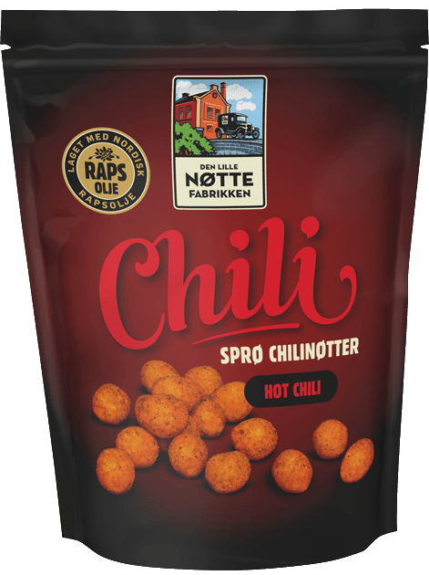 Den Lille Nøttefabrikken. I 2003 kjøpte Brynild Gruppen Den Lille Nøttefabrikken, og i 2006 flyttet de hele “nøtteproduksjonen” til Fredrikstad. Nøtter produseres jo ikke i en fabrikk, de gror i naturen, men blant annet chilinøttene som du ser på bildet blir “bakt” basert på en hemmelig og spesiell resept. Ved overtagelsen i 2003 var det 500 grams plastbeger med Nøtte-Frutti som var den største varelinjen, men etter flyttingen til Fredrikstad har Brynild Gruppens markeds- og produksjons-avdeling utviklet både blandinger, pakninger og satset ytterligere på markedsføring. I dag eksporteres det nøtter fra Fredrikstad til både Sverige og Finland, og nøtter og tørkede frukter er det største virksomhetsområdet i gruppen.