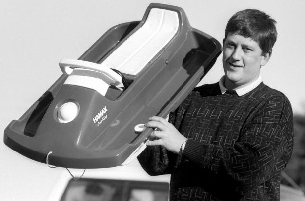Hamax er nok best kjent for sine akebrett i Fredrikstad. Selskapet ble startet i 1958 under navnet Plast & Form AS, og i 1978 byttet de navn til Hamax. Andre kjente produkter er mini-ski og i den senere tid sykkelseter. På bildet ser vi Vidar Godiksen som i 1989 viser frem et nyutviklet akebrett.