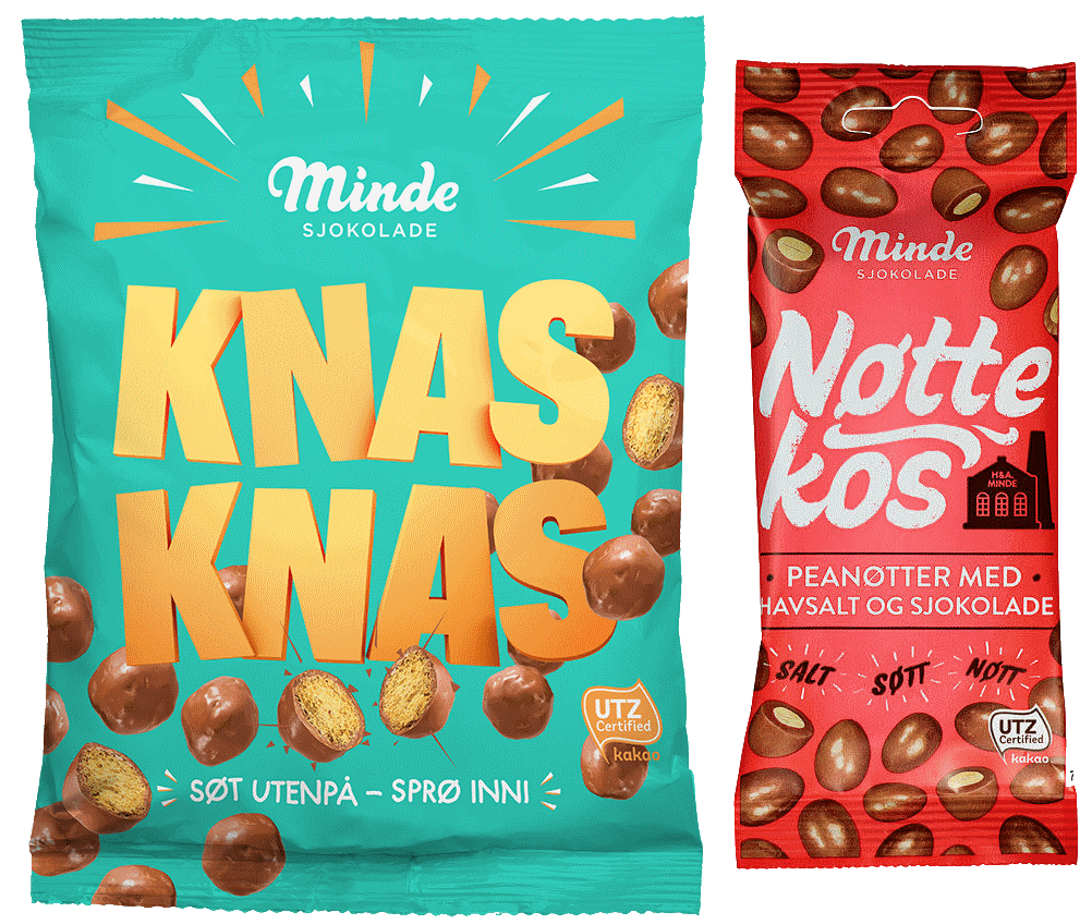 Minde Sjokolade. Det virker som en liten hemmelighet at vi faktisk har en egen sjokoladefabrikk i byen. Fabrikken har sine røtter tilbake til 1898 i Bergen. Tidligere har både Friele-familien og Riber & Sønn eid selskapet, før Jon Brynildsen kjøpte det i år 2000. Ti år senere ble fabrikken i Bergen lagt ned, og hele produksjonen foregår nå i Fredrikstad. Forfatteren ledet selv et utviklingsprosjekt som resulterte i produktet Minde Knaz som sees på det venstre bildet, og jeg skrev også en masteroppgave i hvordan bedriften gjennom såkalt brand extension kunne bruke Minde navnet på andre produktgrupper. Sistnevnte ser dere eksempel på i det høyre bildet.